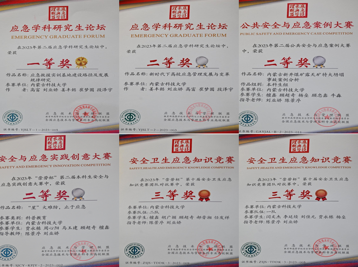 乐天使研究生高富、姜丰懿分别获得应急技术与管理联盟第二届应急学科研究生论坛一等奖和二等奖;贾永栋、周心阳、马玉见、顾超奇、檀鑫获“崇劳杯”第二届本科生安全与应急实践创意大赛科普教育类二等奖;檀鑫、顾朝奇、杨垒、顾忠鑫、牛淼获得应急技术与管理联盟第二届公共安全与应急案例大赛本科生组二等奖;闫文杰、李延续、刘佳元、贾永栋、杨垒组成的一队与檀鑫、胡广颖、顾朝奇、郝晋湘、任发祥组成的二队获得“崇劳杯”第十届安全卫生应急知识竞赛团队对抗赛三等奖。