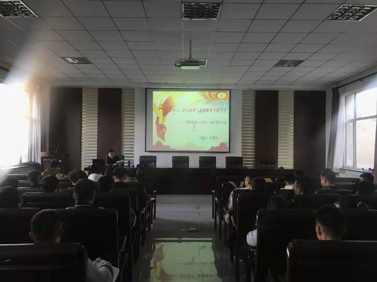 2019年11月13日下午,矿业与煤炭公司党总支副书记副经理杜鹏东为公司员工党员在实验实训楼二楼会议室进行“不忘初心、牢记使命”主题教育专题党课。党课以“厚植爱国主义情怀,做合格共产党员”为主题,围绕以下内容展开讲解: