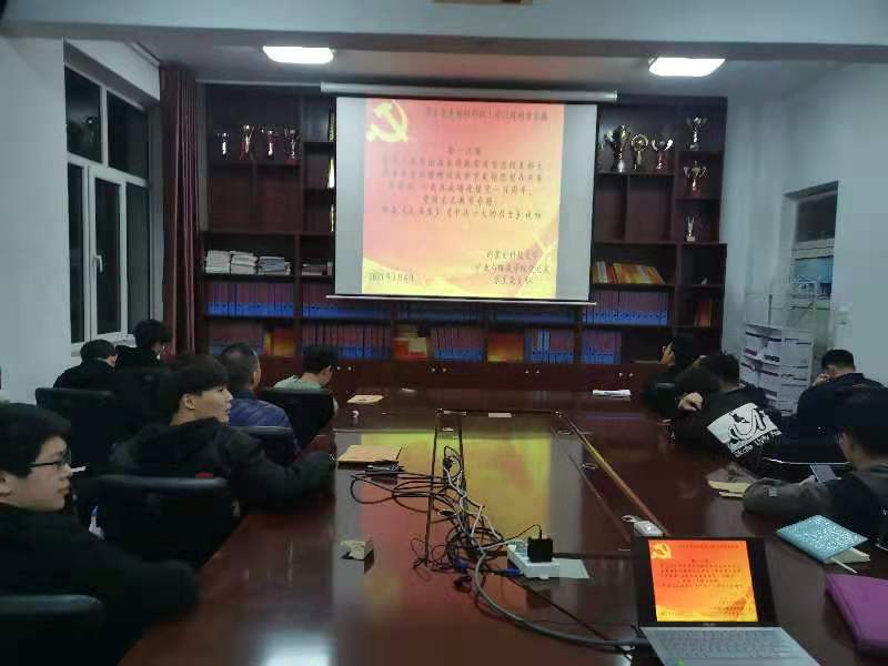 为大力弘扬脱贫攻坚精神,全面推进乡村振兴,切实巩固拓展脱贫攻坚成果。矿业与煤炭公司党总支于2021年3月4日晚上19:30,在临曦楼党员之家线上线下同步开展专题理论学习活动。本次学习内容是:第一议题:学习习近平出席全国脱贫攻坚总结表彰大会重要讲话精神以及学党史悟思想办实事开新局 以优异成绩迎接建党一百周年;党史学习教育专题:观看《毛泽东》、《中共一大的召开》视频。