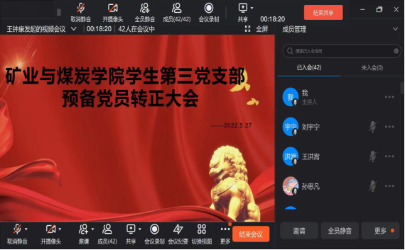 2022年5月27日下午16:20,乐天使员工第三党支部于钉钉平台线上开展预备党员转正大会。本次会议由支部书记闫妍同志主持,支部全体党员参加。