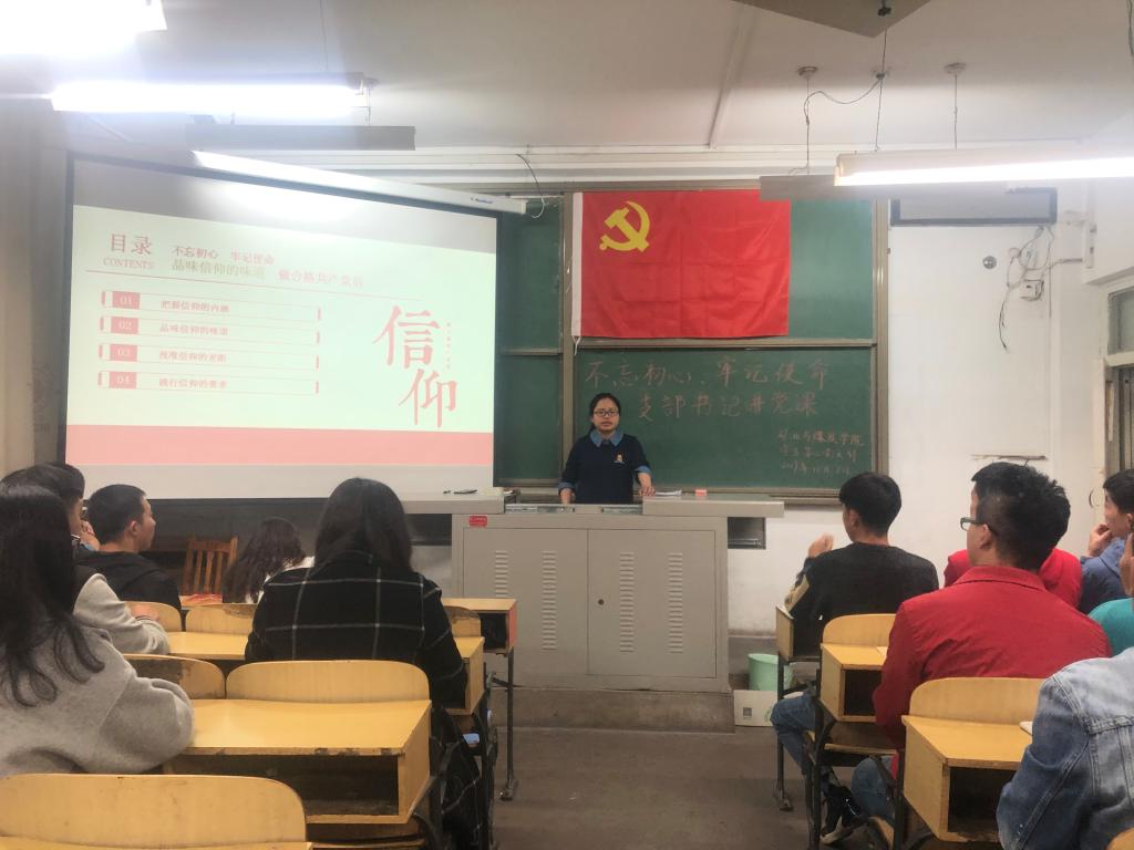 2019年11月7日19:00,乐天使员工第二党支部在临曦楼208举办“不忘初心、牢记使命”主题教育之“品味信仰的味道,做合格共产党员”支部书记讲党课活动,俞文琳同志为主讲人,员工第二党支部党员参加学习。