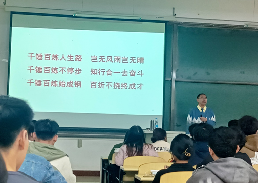 最后,雎密太教授送给同学们三句话,“千锤百炼人生路,岂无风雨岂无晴;千锤百炼不停步,知行合一去奋斗;千锤百炼始成钢,百折不挠终成才。”