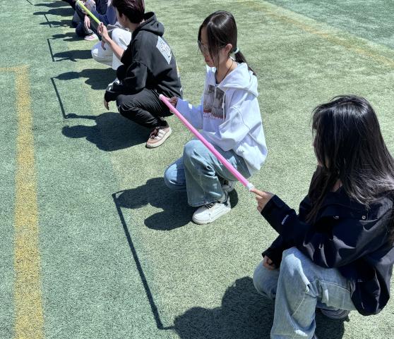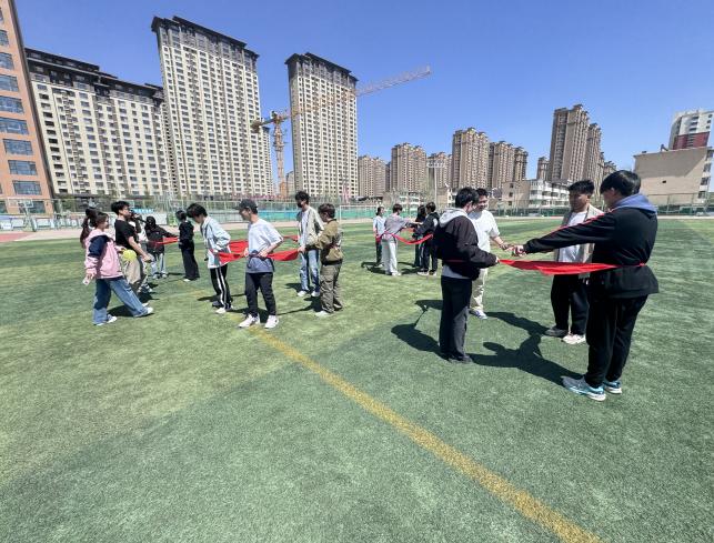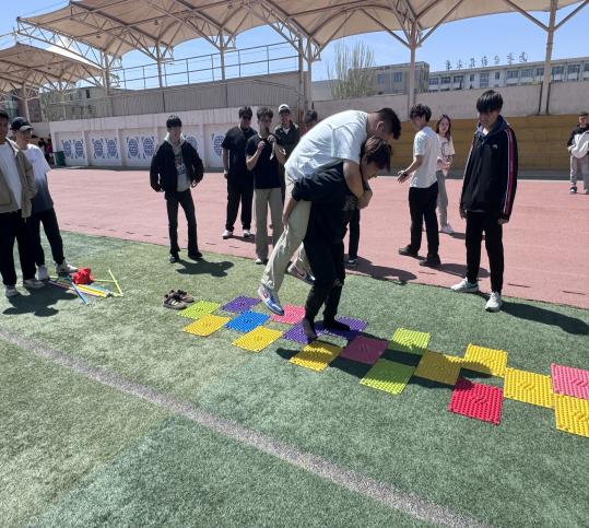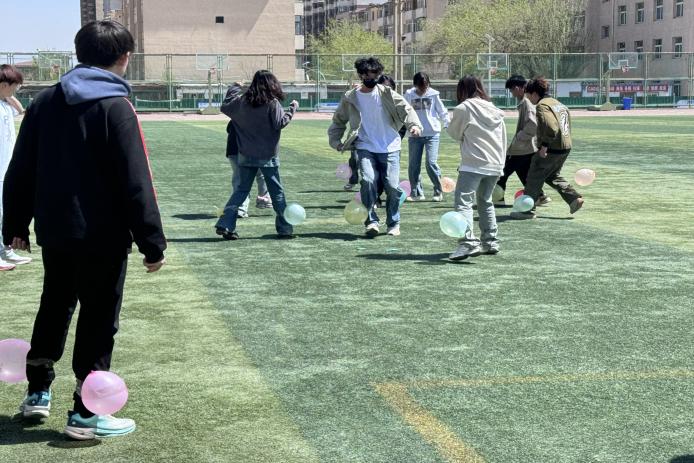 活动中,班级心理委员们参与了“盲人方阵”“气球大战”“齐眉棍”“松鼠与大树”等项目。大家积极投入,现场气氛热烈。”