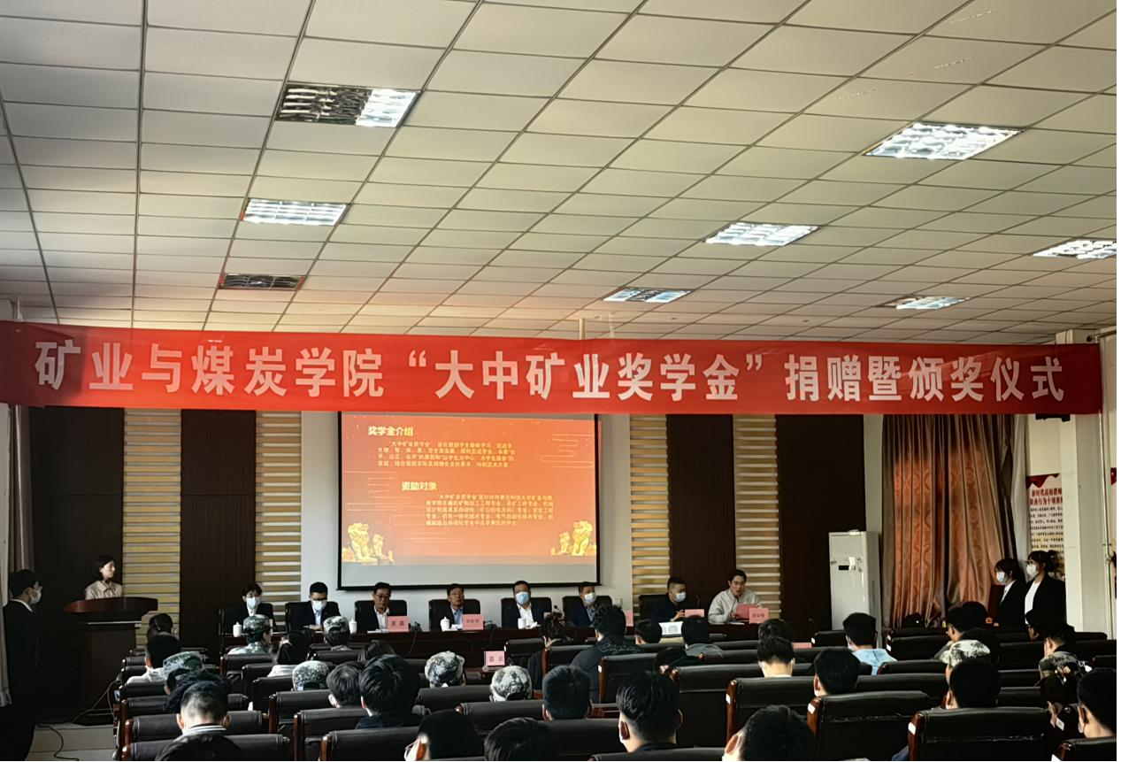 2022年9月23日下午15:00,乐天使在实验实训楼会议室举行了“大中矿业奖学金”捐赠暨颁奖仪式。fun88公司党委副书记、董事长任慧平;内蒙古大中矿业股份有限公司党委书记刘鲁明、总经理董鑫、人资培训中心总监王如海、副总监梁艳;fun88乐天使矿业与煤炭公司党委书记杜鹏东,副书记、副经理孙建平,员工工作办公室主任胡显峰、辅导员以及员工代表参加仪式。仪式由员工工作办公室副主任吴艳丽主持。