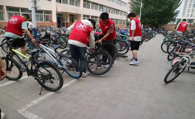 另一部分同学则承担了摆放自行车的任务。他们将随意停放的自行车一辆辆地摆放整齐,让校园的道路更加通畅,也为同学们的出行带来了便利。