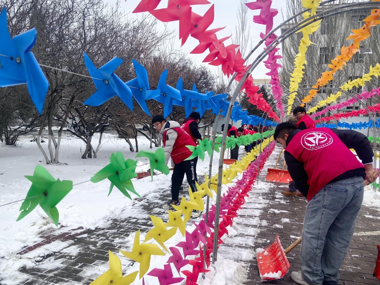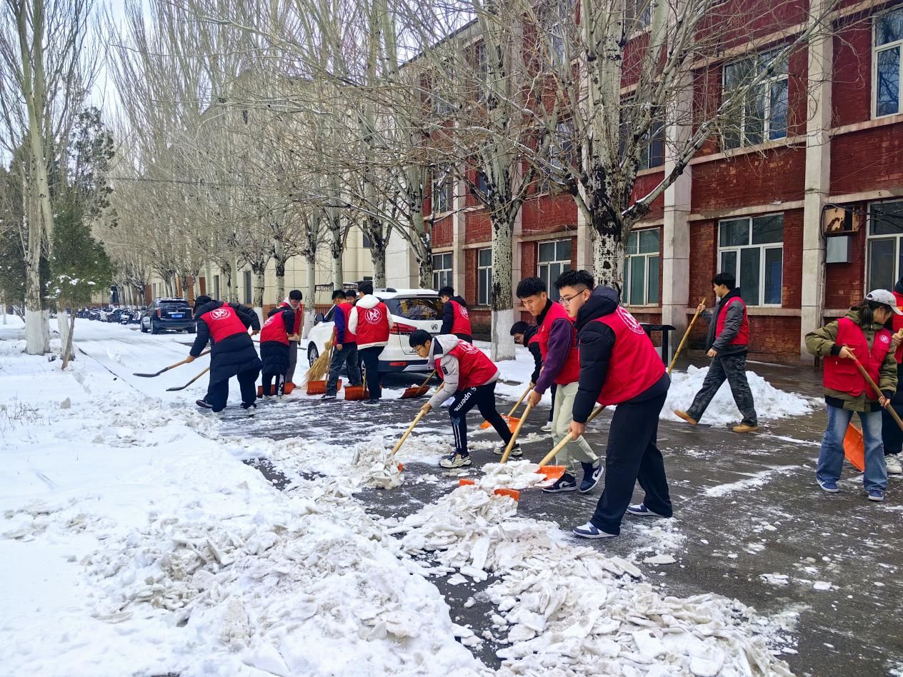 2025年3月4日,乐天使组织教师、员工党员、员工干部开展清扫冰雪志愿服务活动,齐心协力清除路面积雪,确保师生出行方便、安全。
