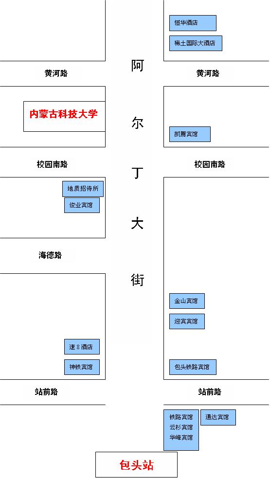 1、本图为fun88乐天使周边宾馆(酒店)示意图,仅供公司新生报到期间家长及新生参考使用。2、如图中标示内容临时有变,恕不另行通知。3、图中标示出的宾馆(酒店)食宿条件各异,请新生及家长根据个人情况自行选择。4、公司距离包头火车站仅1.5公里,可乘坐1、2、8、22路等公交车直达。