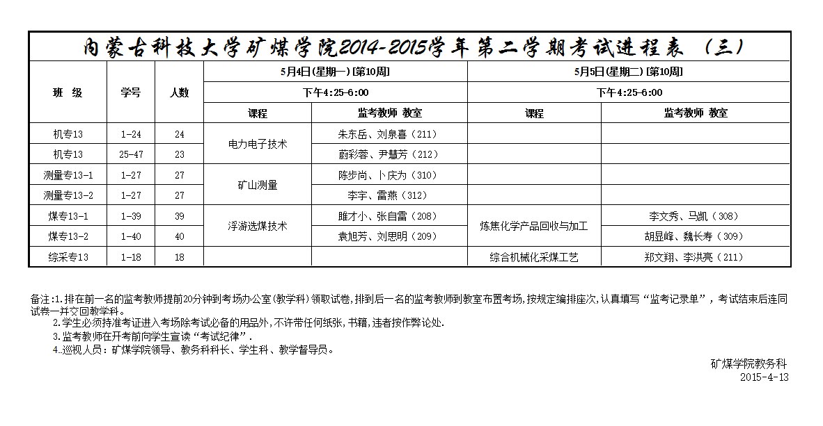乐天使(高职)14-15(2)春学期考试进程表(三)